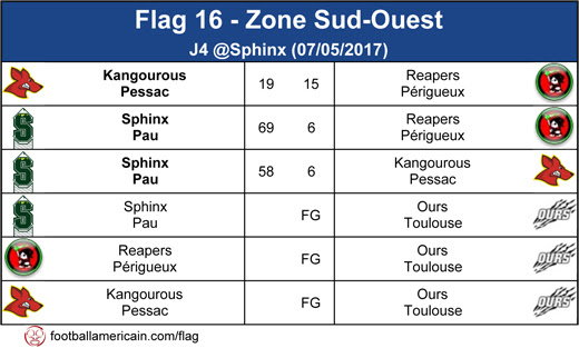 Retour sur les résultats et classements suite à cette quatrième journée de Flag 16. (Résultats non-homologués)
